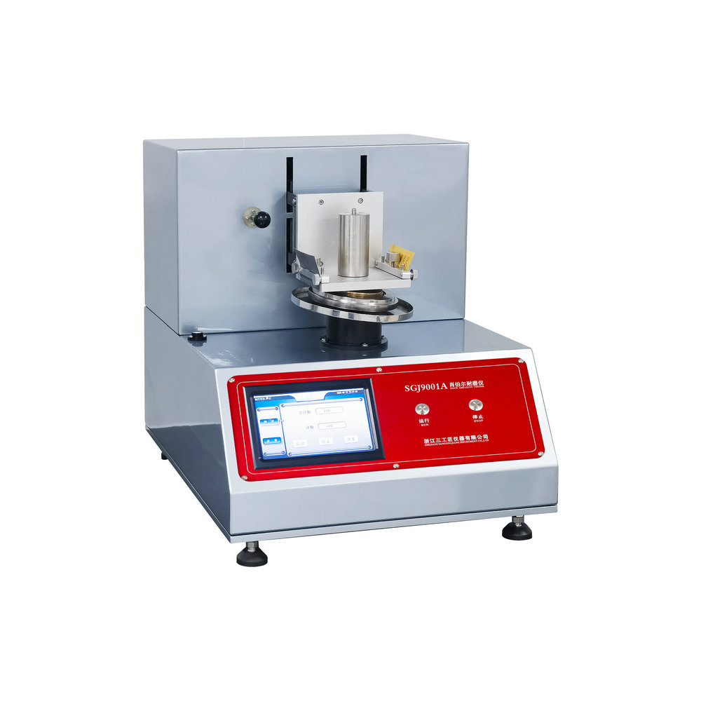 用于測試織物的耐磨性能,多用于汽車內飾材料測試。儀器設計緊湊堅固,包括一個鈍角圓錐夾頭的夾持裝置,固定摩擦頭的裝載臺,以及控制和驅動單元。所有部件設計合理且易于操作。為方便準備和輕夾試樣,儀器配有一個可調刻度的環形扳手,以測試膨脹高度。試驗時,試樣置于摩擦頭平面,施加一個旋轉動作進行摩擦。