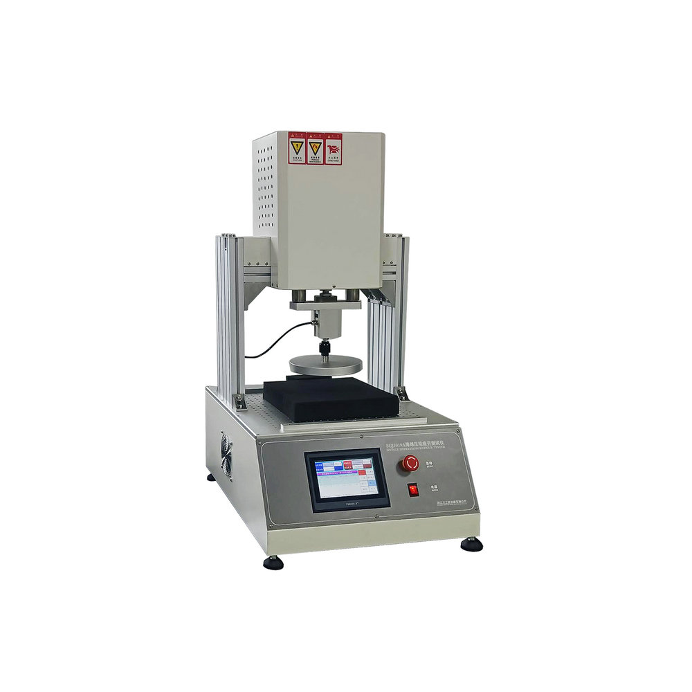主要用于測定多孔彈性材料的凹入硬度。可測定聚氨脂海綿泡沫試樣進行國家標準的規定測試,準確測出海綿、泡沫等材料的壓陷硬度。另也可用于對已生產出的座椅泡沫(如靠背、座墊泡沫等)進行規定壓陷硬度的測量,準確測出座椅各泡沫件的壓陷硬度。海綿泡沫壓縮應力試驗將試樣置于上、下壓盤間,上壓盤以規定速度向下壓縮一定尺寸的試樣至國家標準要求的A法(B法、C法)所規定的凹度時,其上的荷重元將感應到的壓力反饋給控制器處理并顯示,從而測得海綿、泡沫等試樣等材料的壓陷硬度。